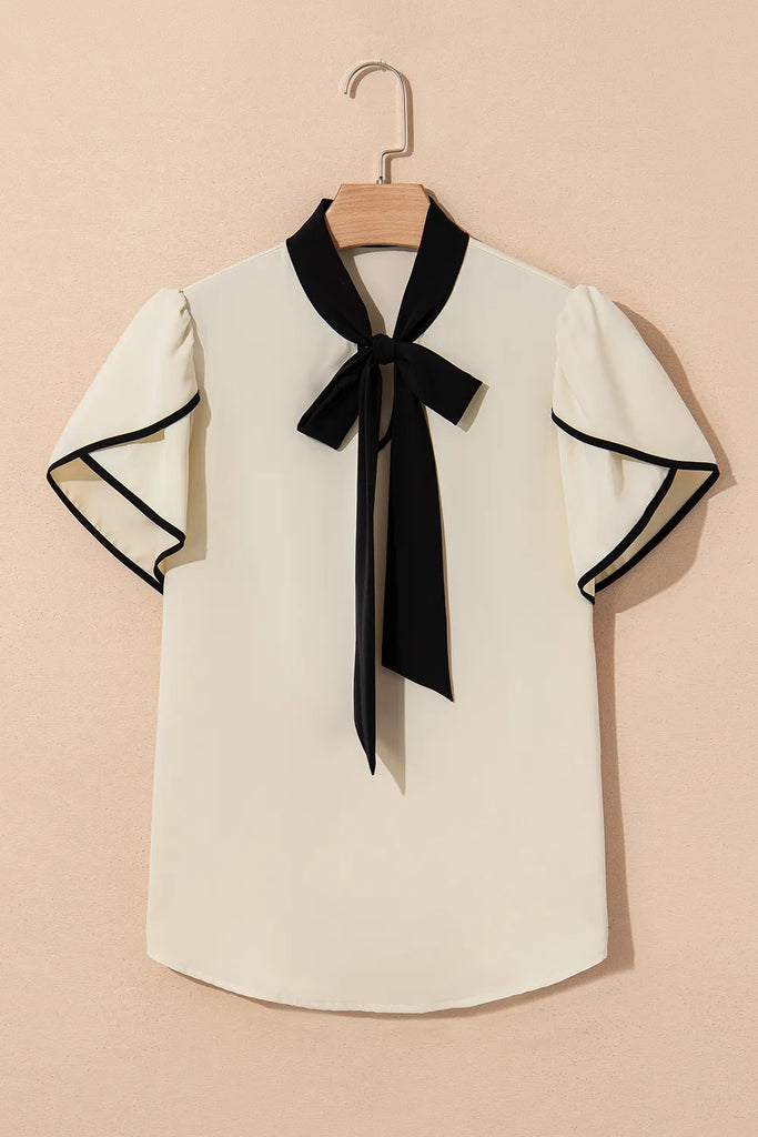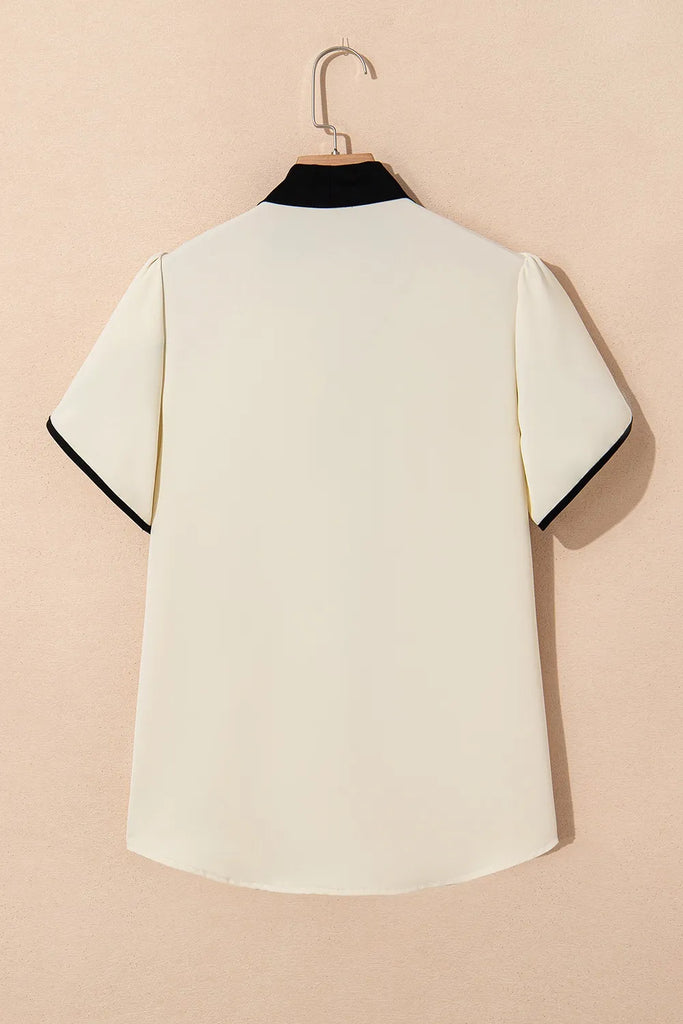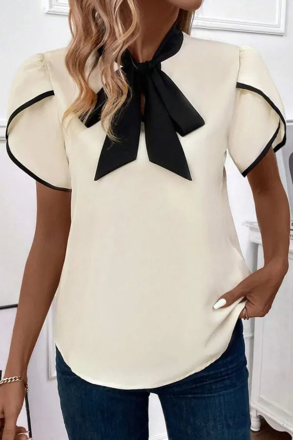 Bow Tie Contrast Short Sleeve Blouse