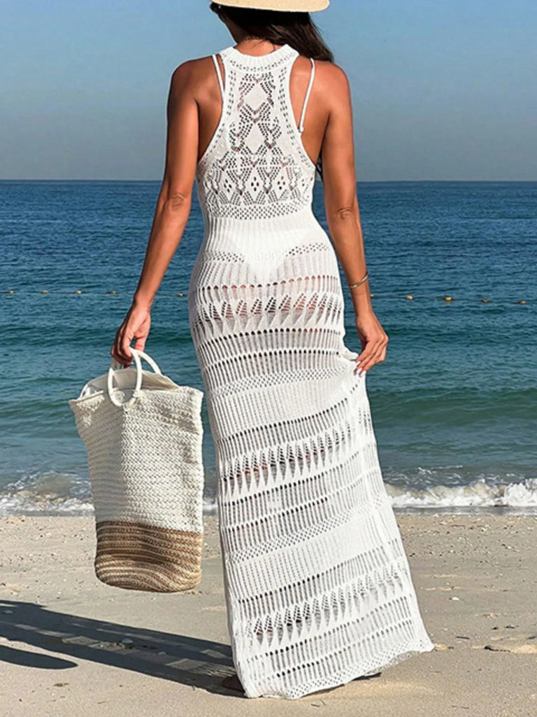 Crochet Sleeveless Split Cover-Up Maxi Dress