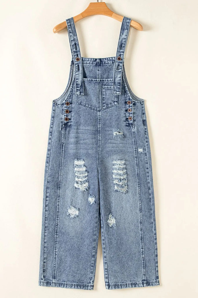 Distressed Bib Pocket Wide Leg Denim Overalls