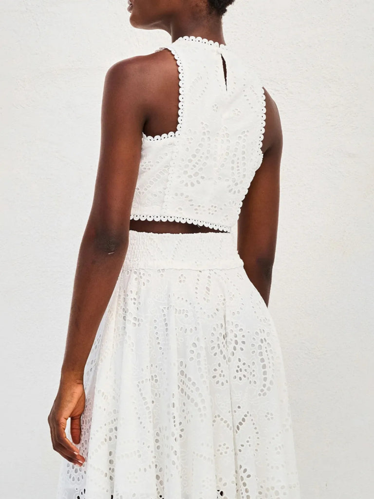 Eyelet Lace Top and Maxi Skirt Set