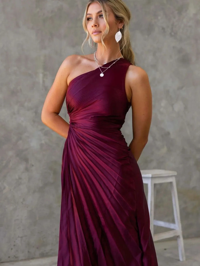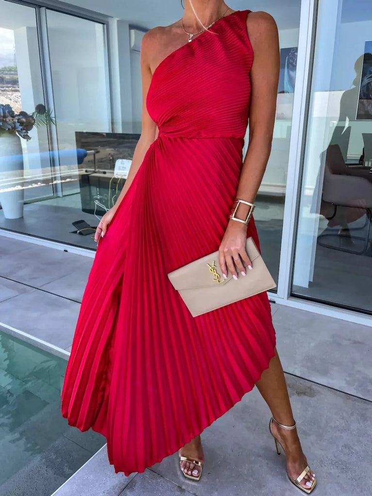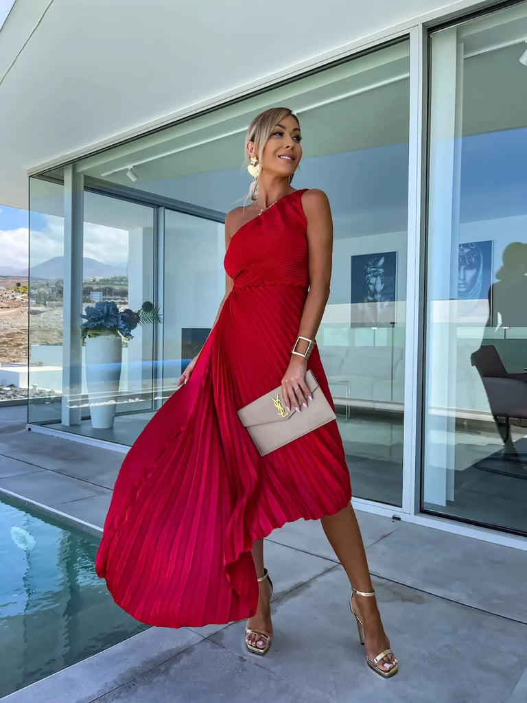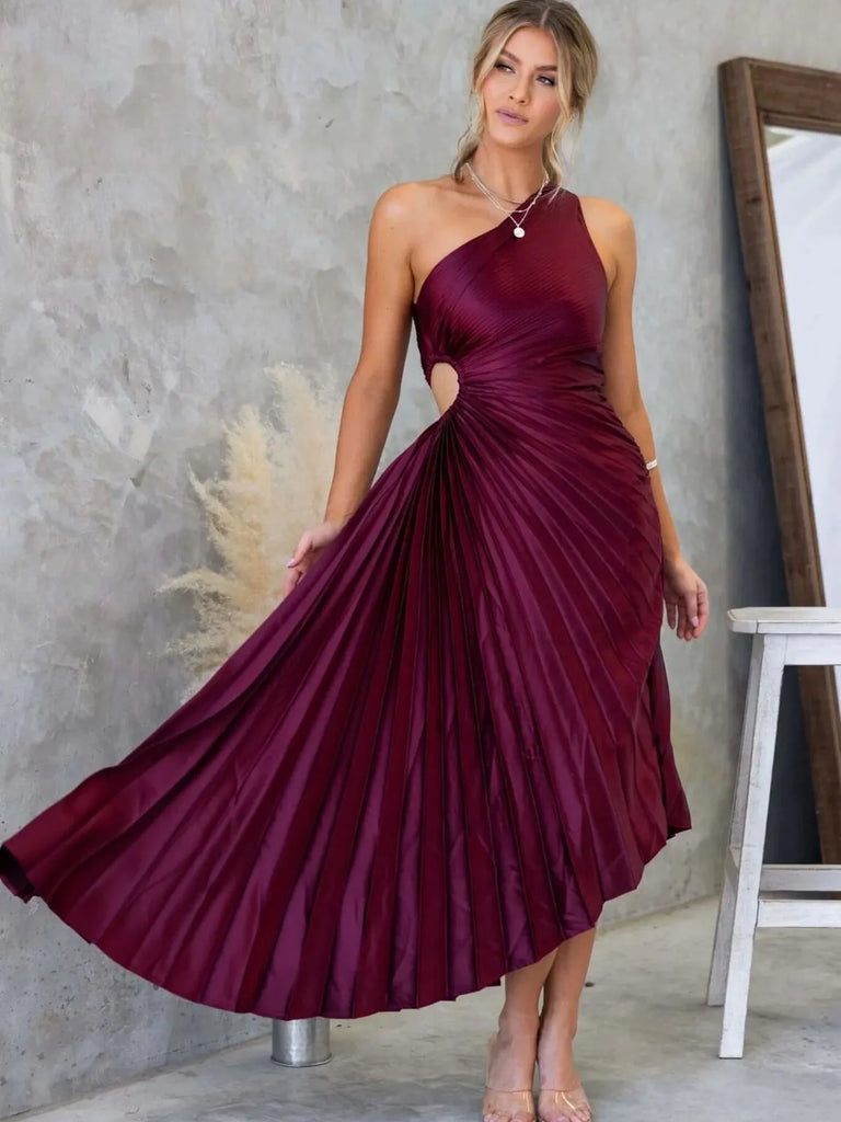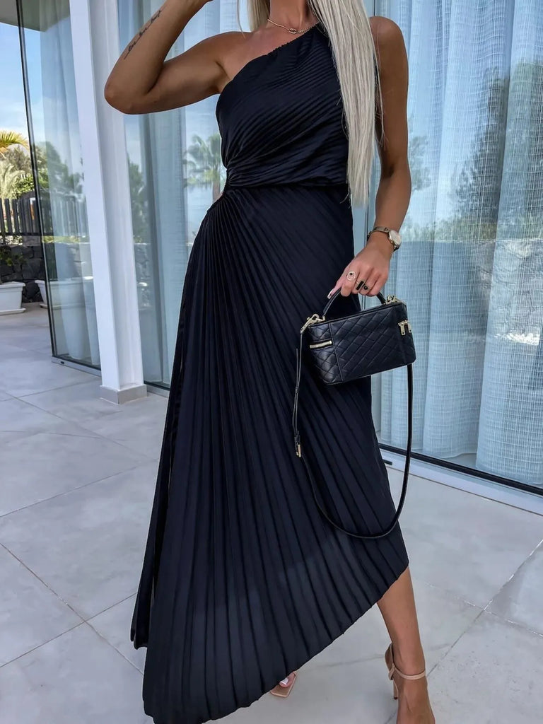 Full Size Single Shoulder Pleated Midi Dress Plus Size