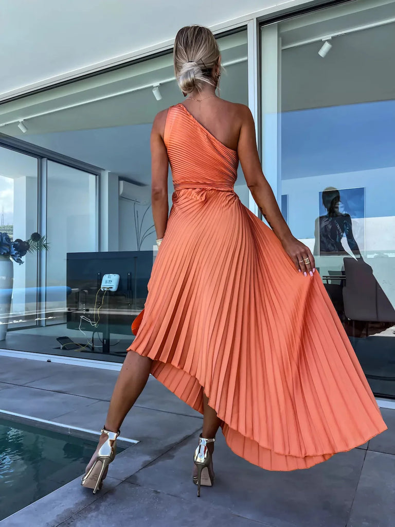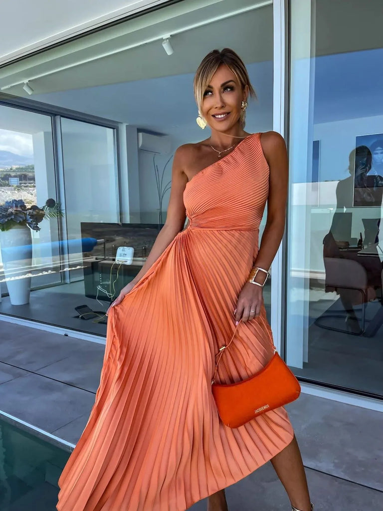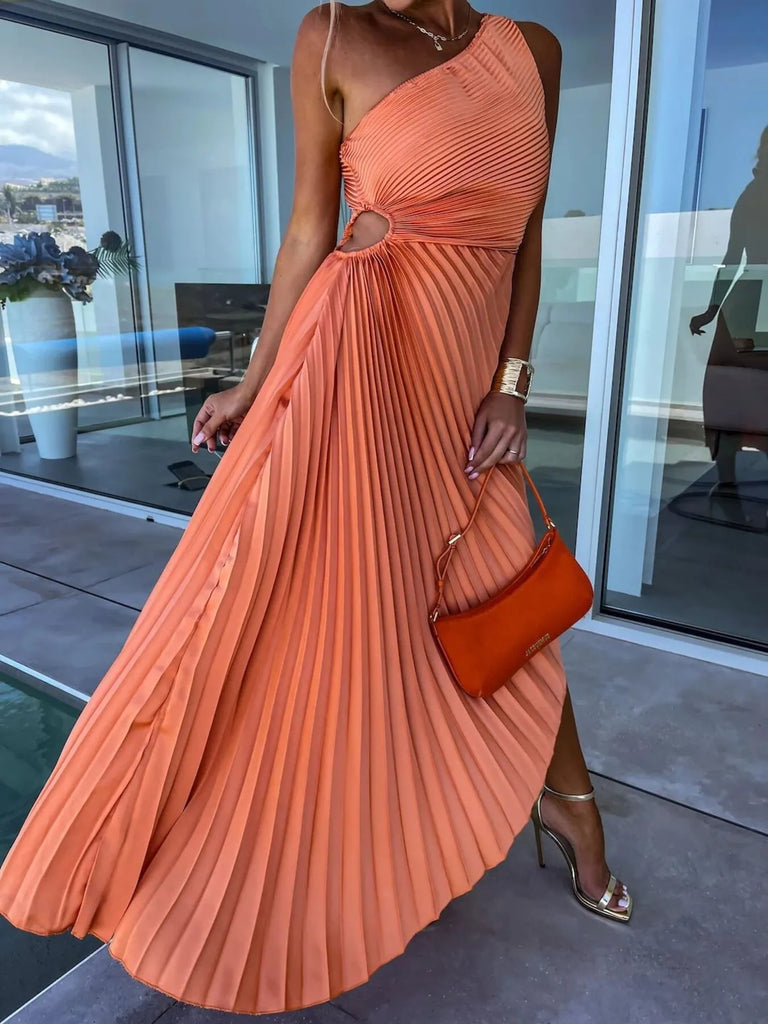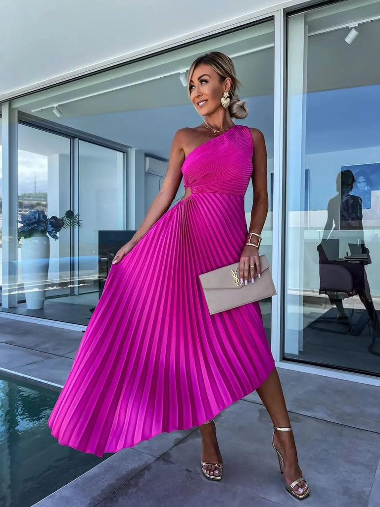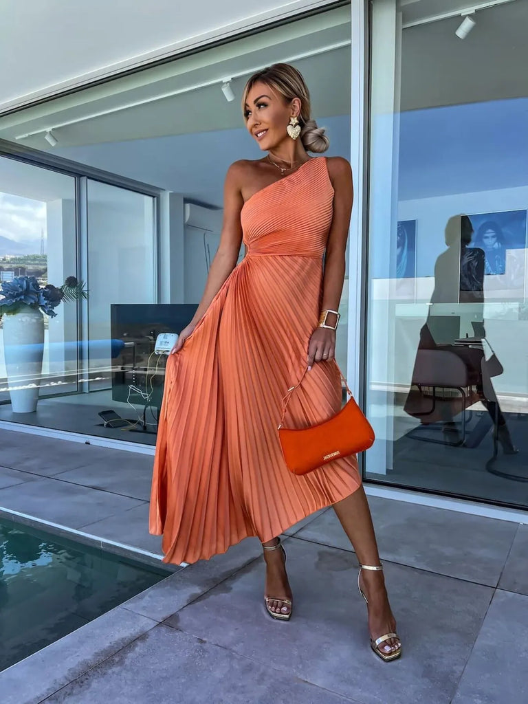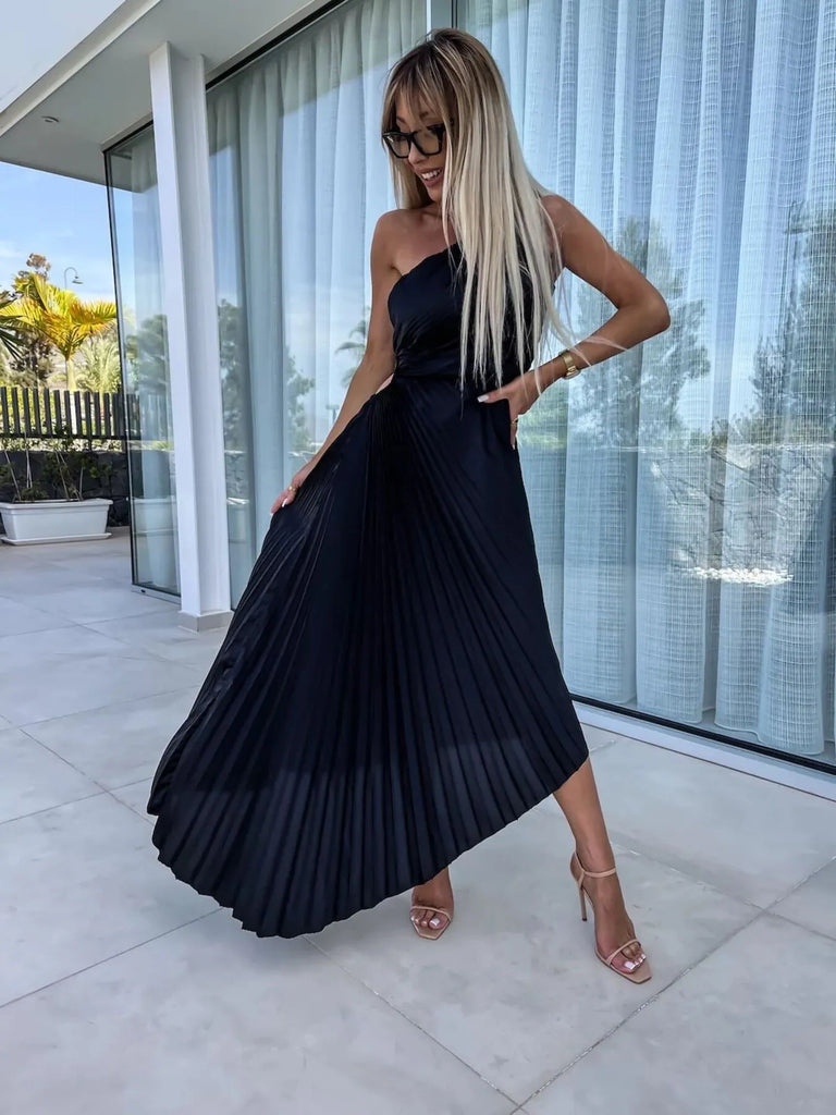 Full Size Single Shoulder Pleated Midi Dress Plus Size