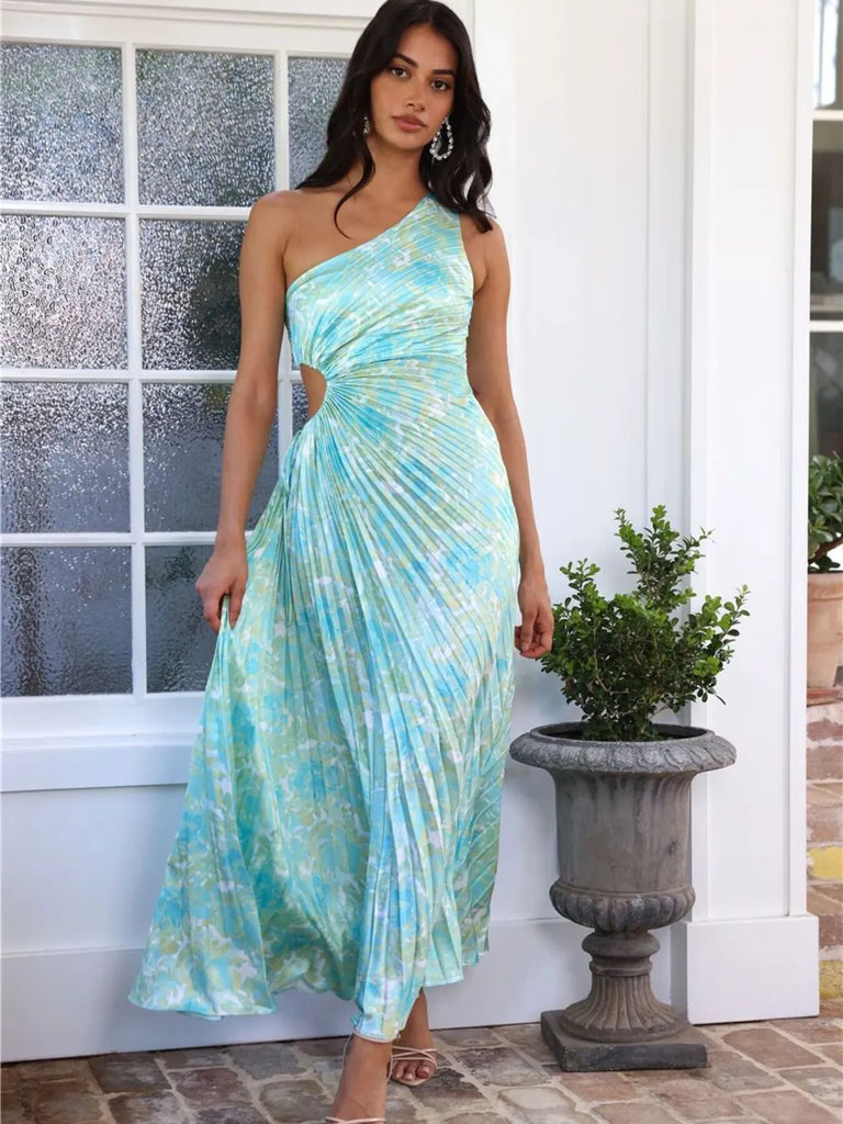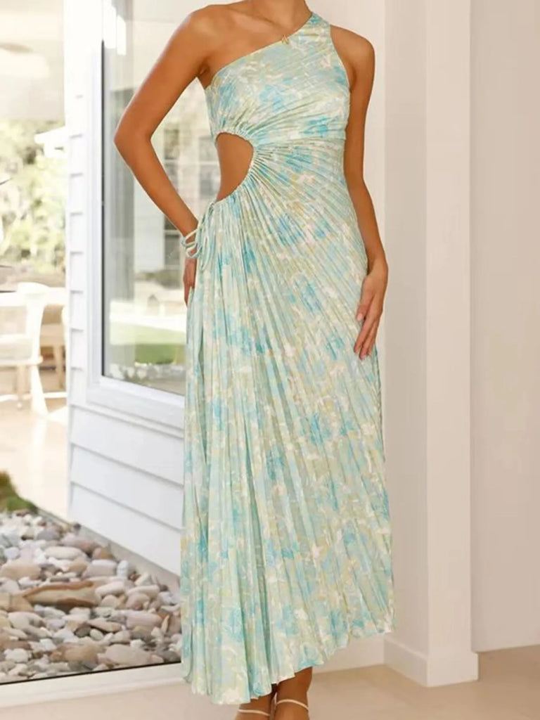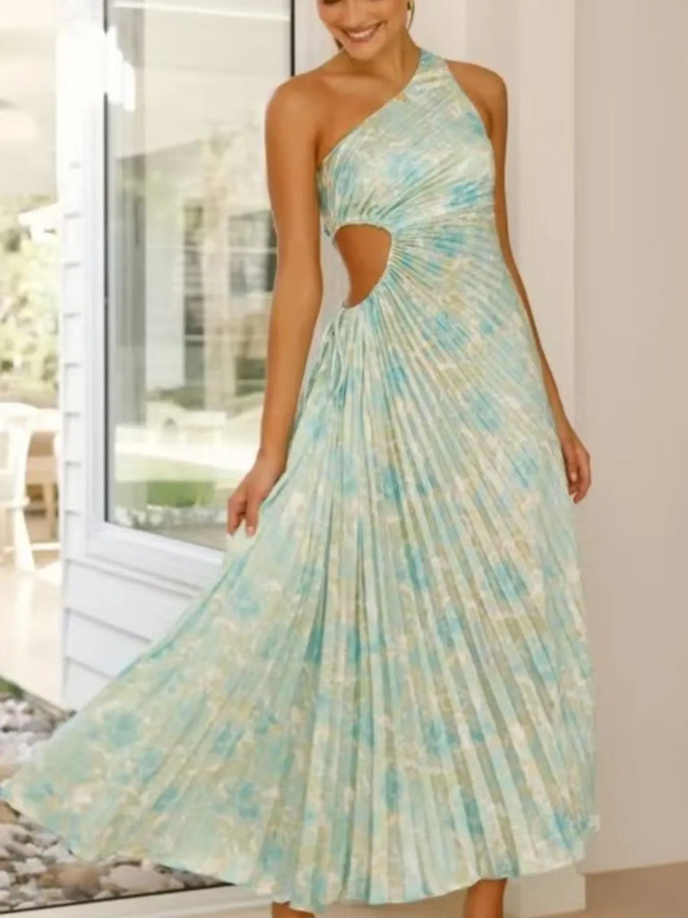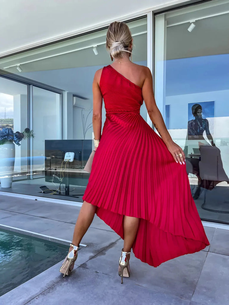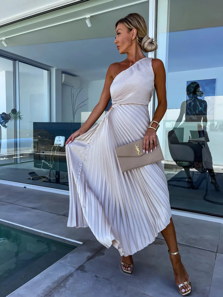 Full Size Single Shoulder Pleated Midi Dress Plus Size