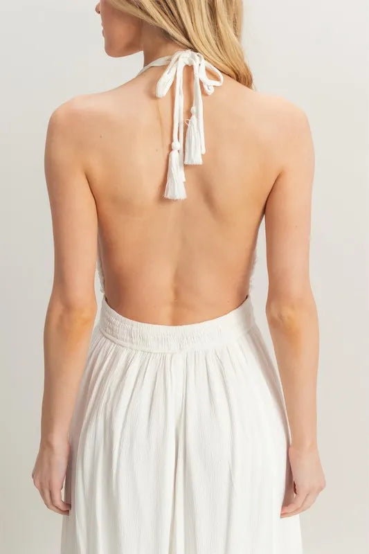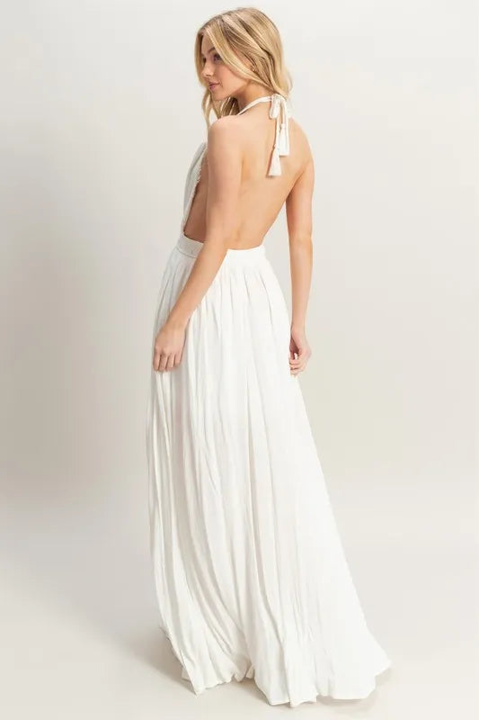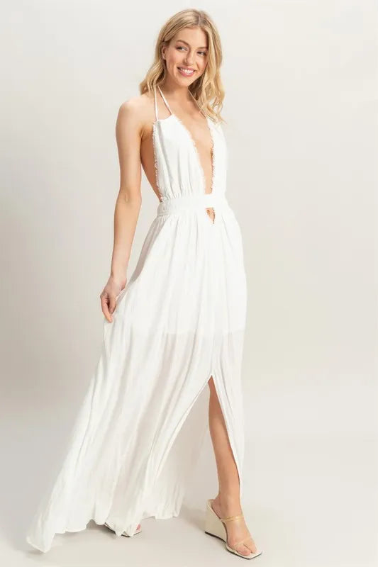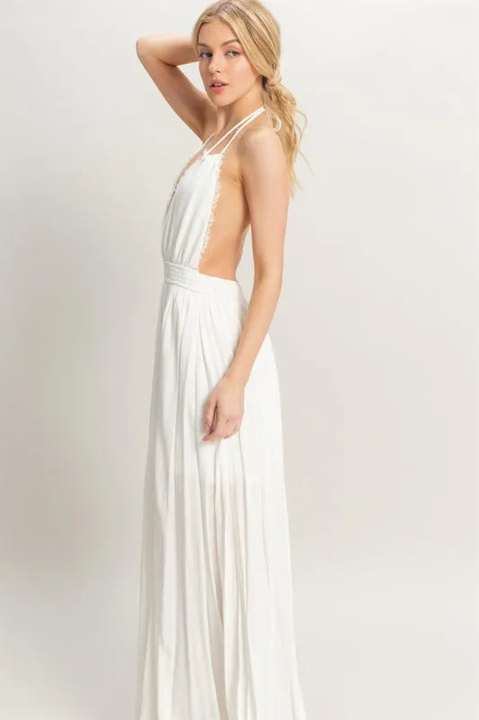 HYFVE Halter Neck Fitted Waist Flowy Maxi Dress