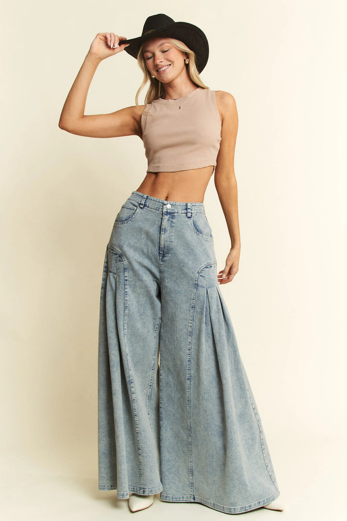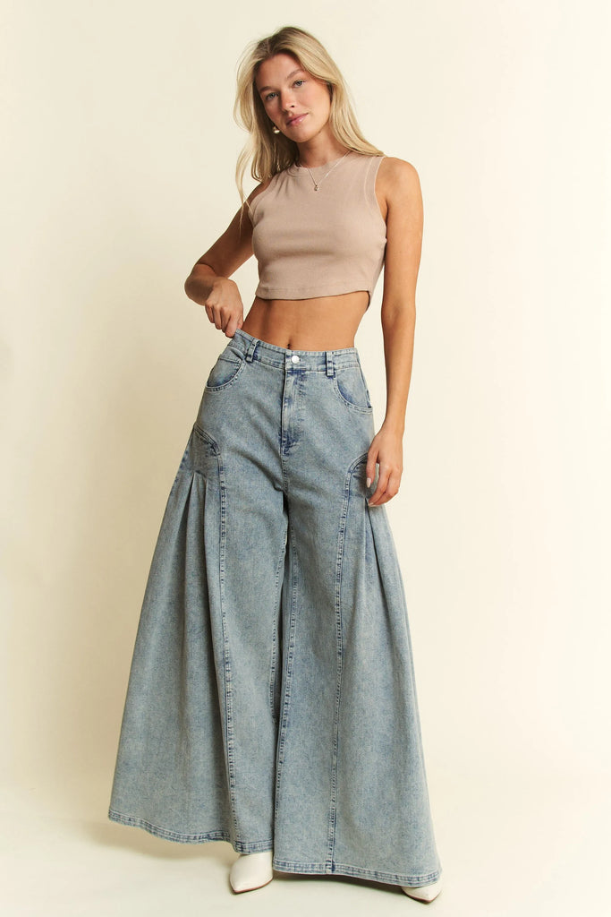 Jade By Jane High-Waist Pleated Wide Leg Jeans