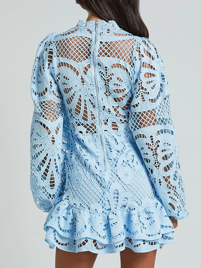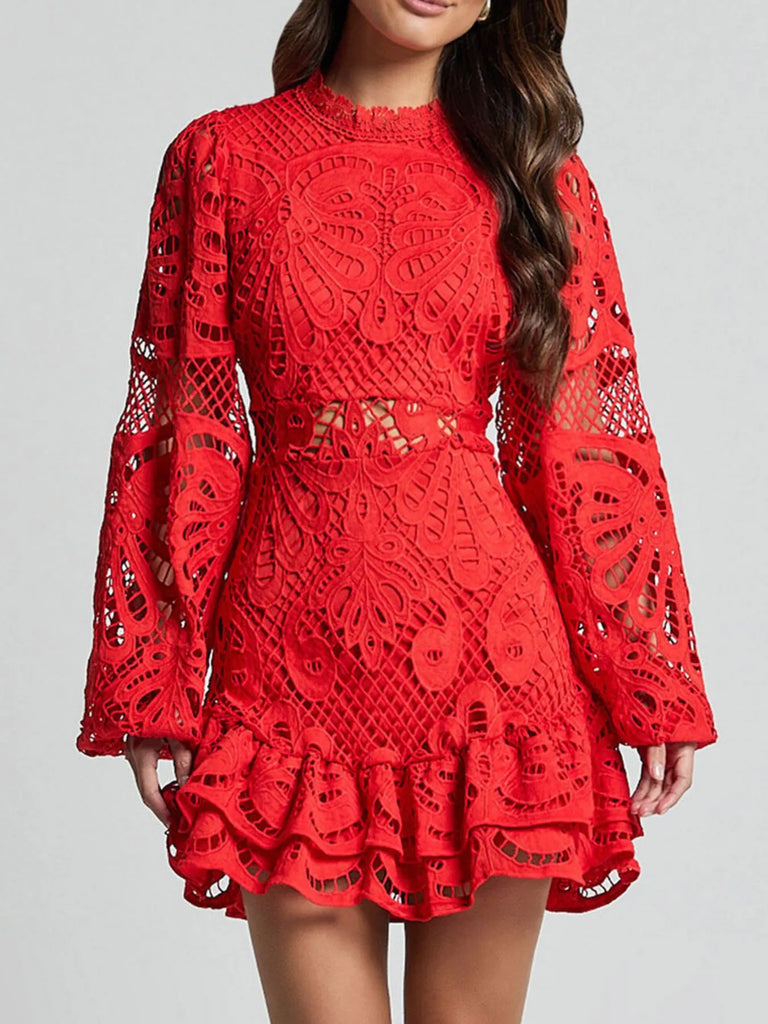 - Features:Lace,Ruffled,Layered,Cutout,Zipper