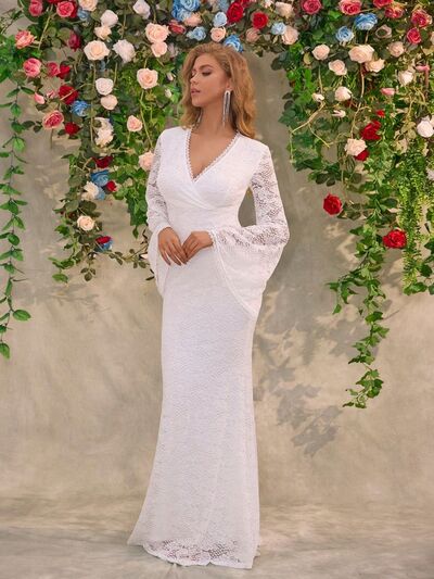 Lace Surplice Flare Sleeve Maxi Dress