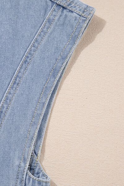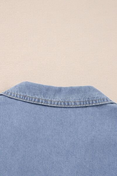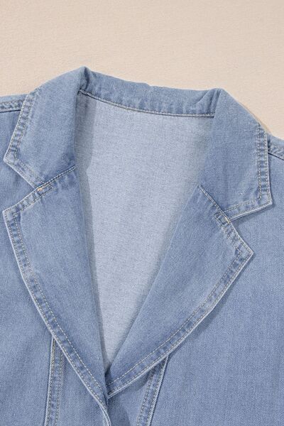Lapel Neck Cap Sleeve Denim Babydoll Dress