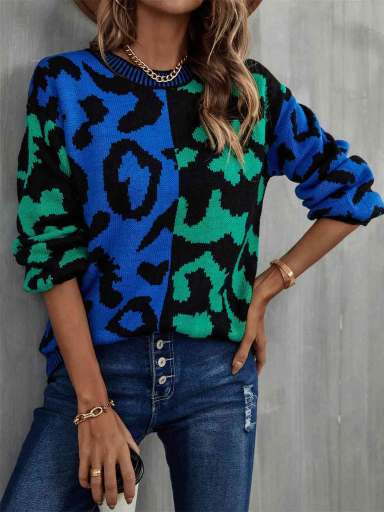 Be bold and fierce in our Leopard Round Neck Long Sleeve Sweater! This bright and bold print sweater will make a statement wherever you go. With its round neck and long sleeves, you'll stay cozy and stylish all day long. Unleash your wild side with this playful and trendy sweater. Rawr!