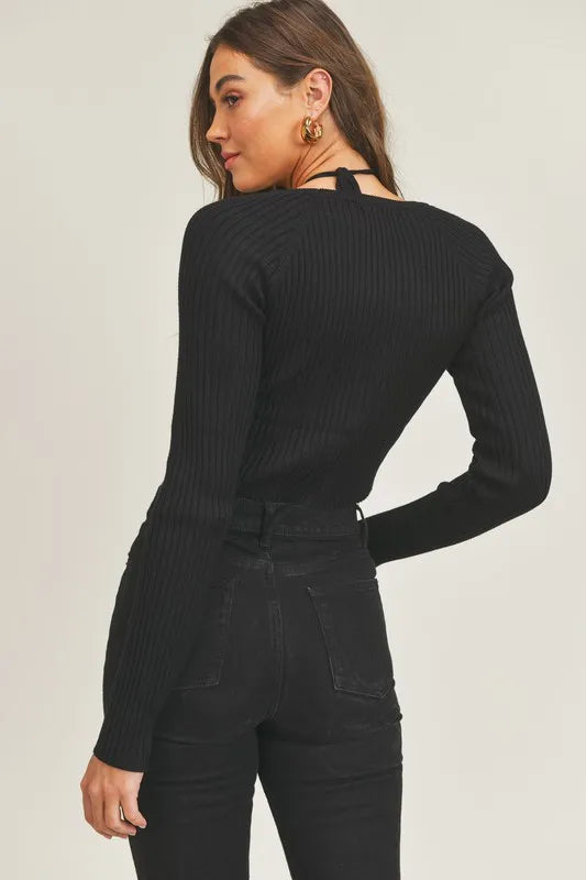 MABLE Long Sleeve Crop Sweater Top and Inner Bra Set