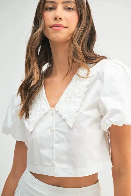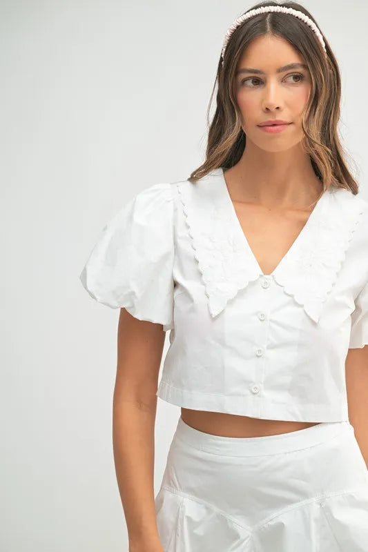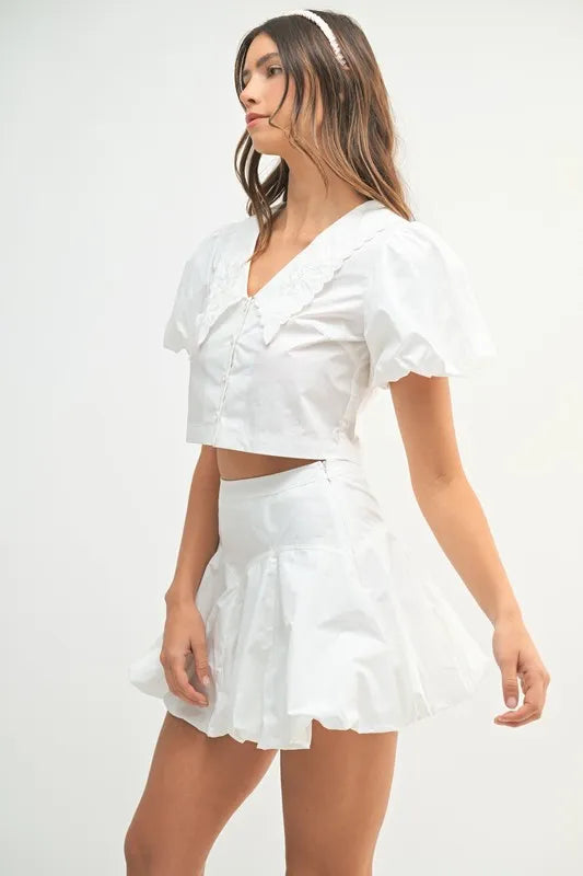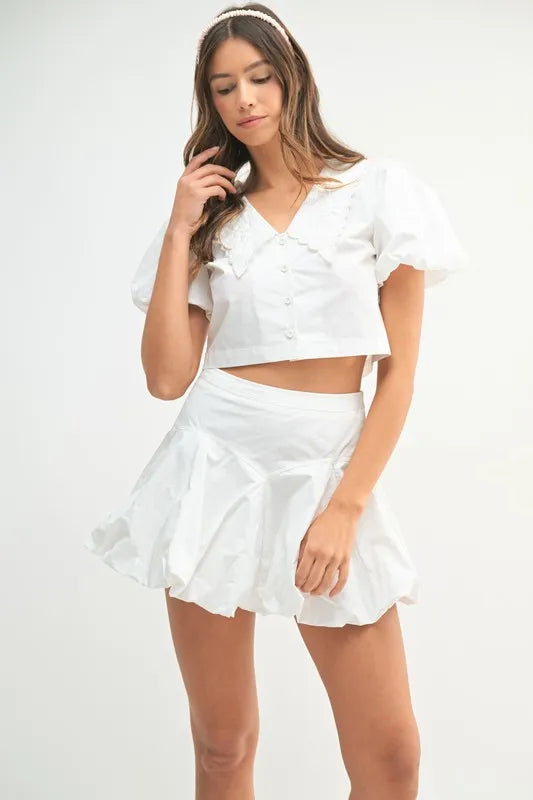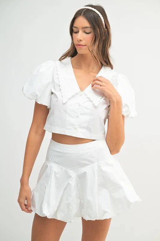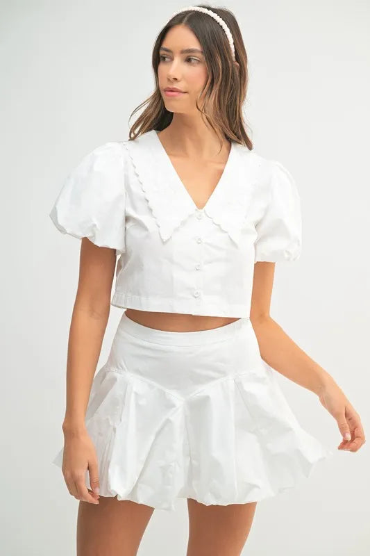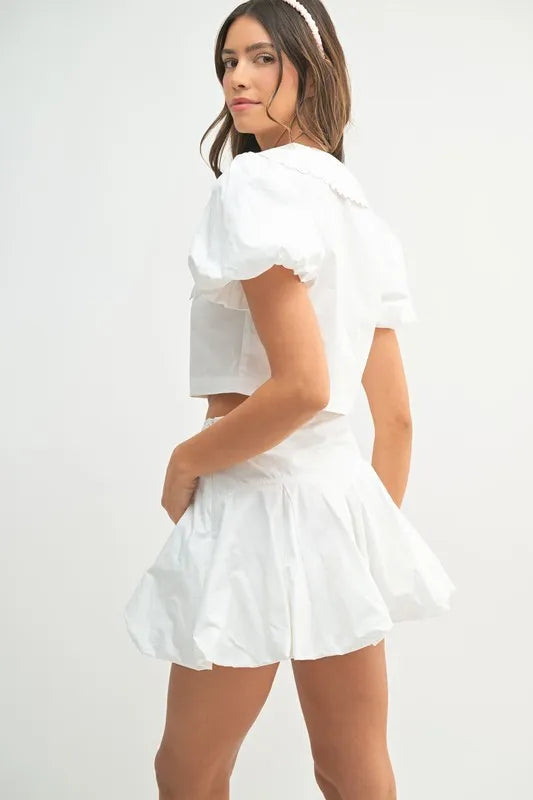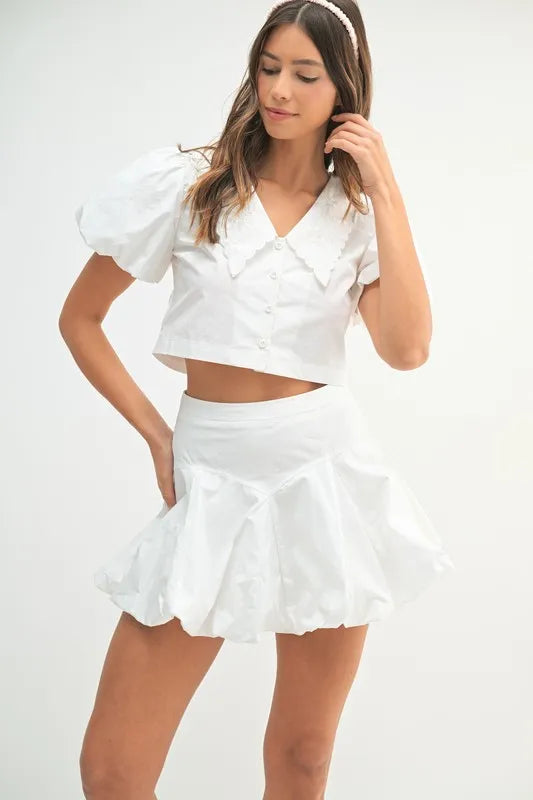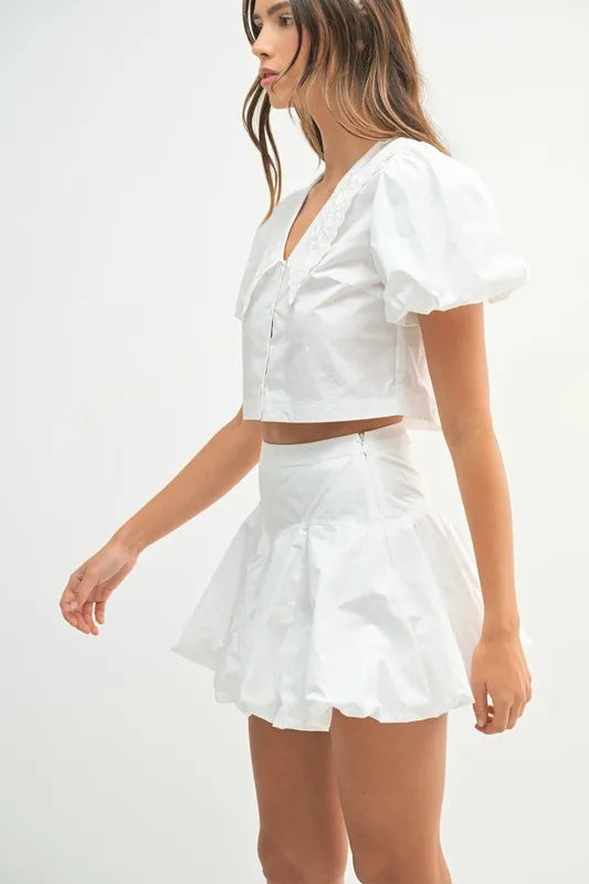 MABLE Puff Sleeve Button Down Top and Bubble Skirt Set