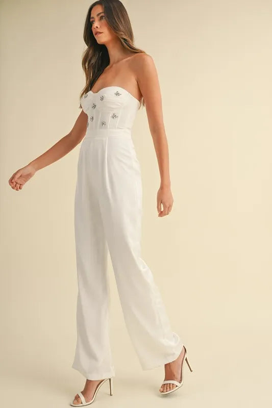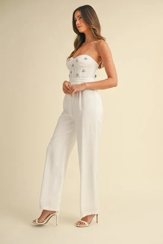 MABLE Rhinestone Applique Bustier Jumpsuit