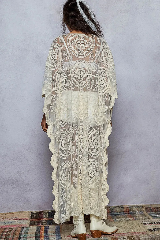 This beach cover-up kaftan features delicate lace embroidery for a stylish and elegant look. The intricate lace details add a touch of sophistication to the kaftan. Perfect for layering over your swimsuit for a chic beach or poolside ensemble. Stay stylish and comfortable with this versatile and effortlessly glamorous piece.