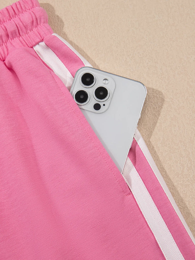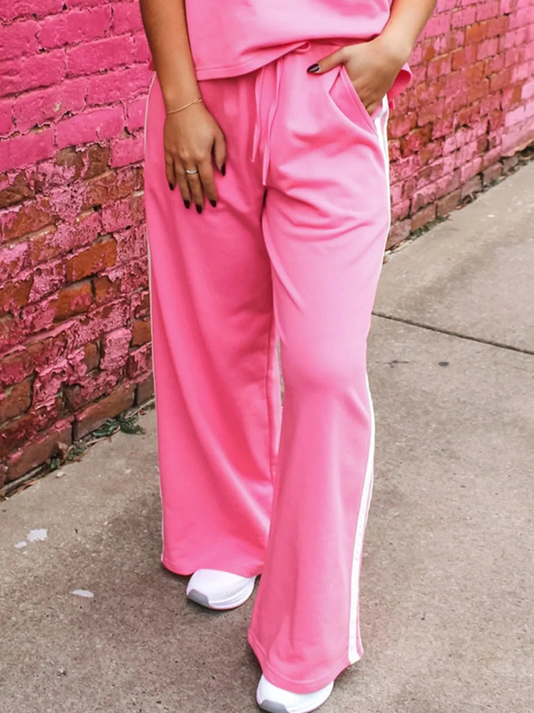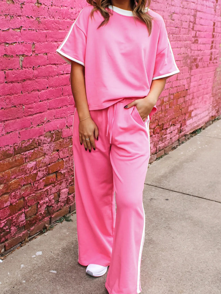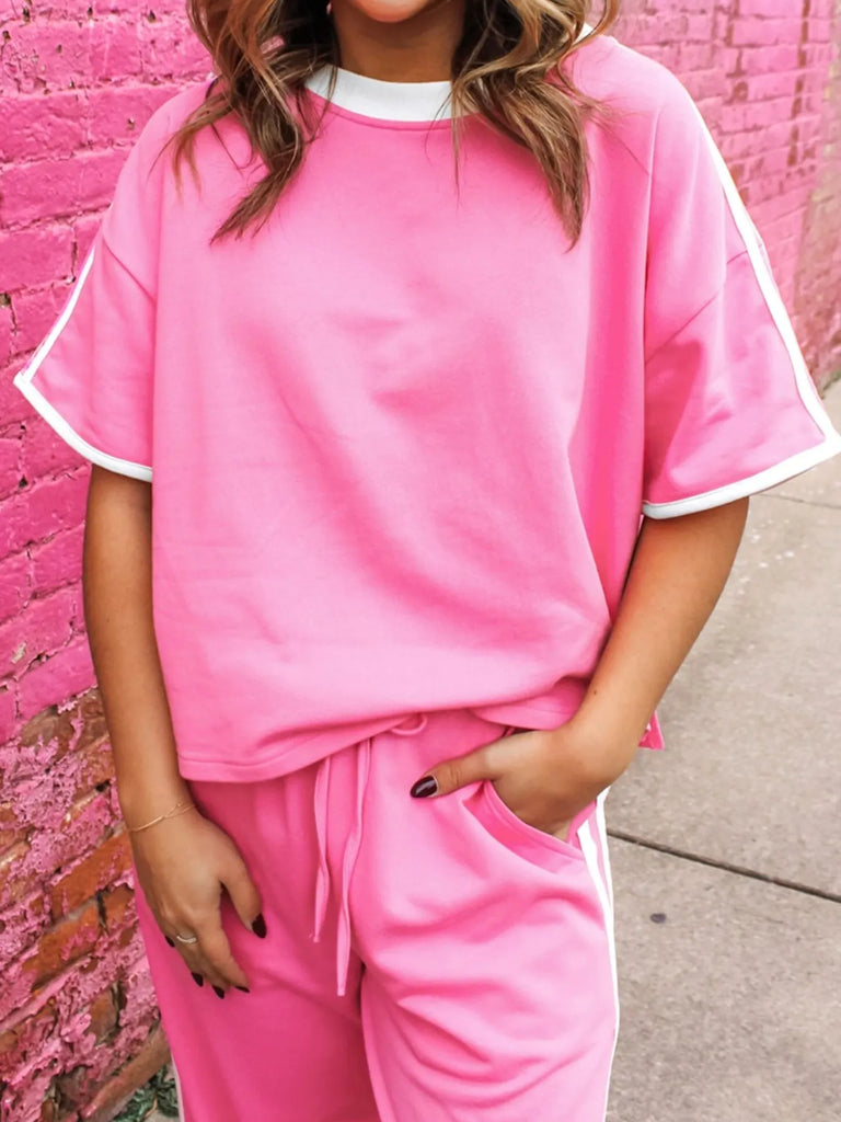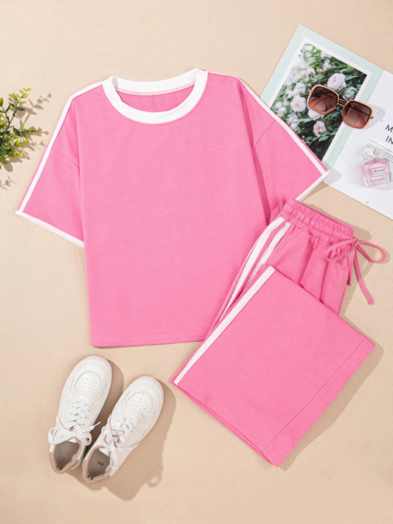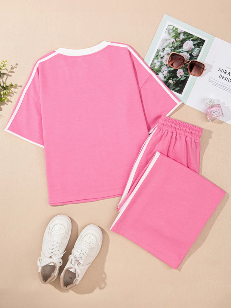 Stripe Detail Casual Tee and Pants Leisure 2pcs Set