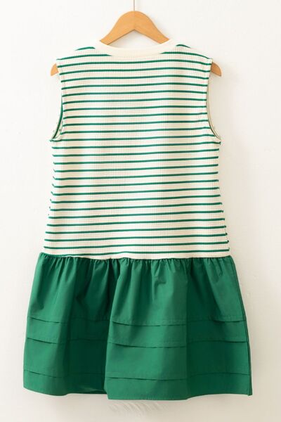 Stripe Sequin Clover Patched Contrast Mini Dress with Pockets