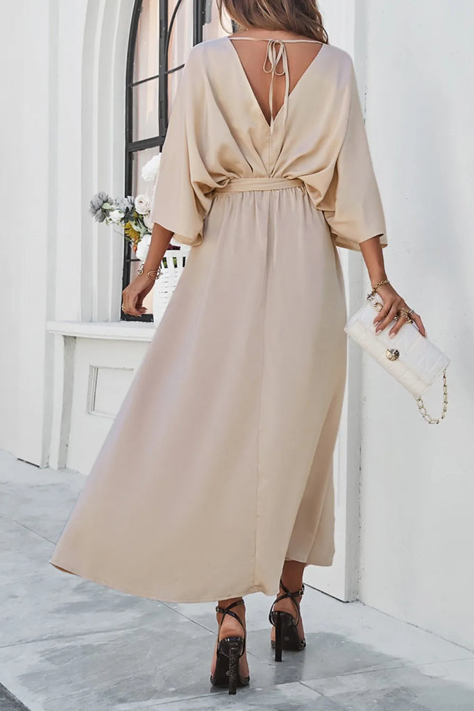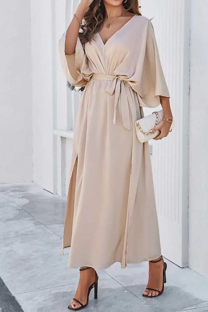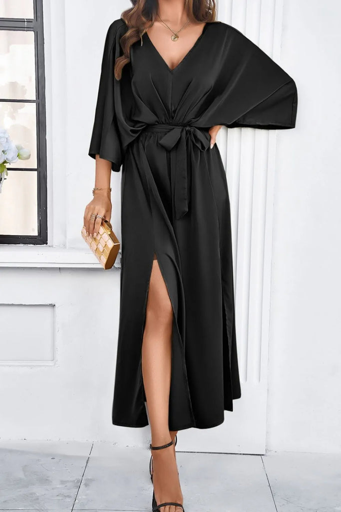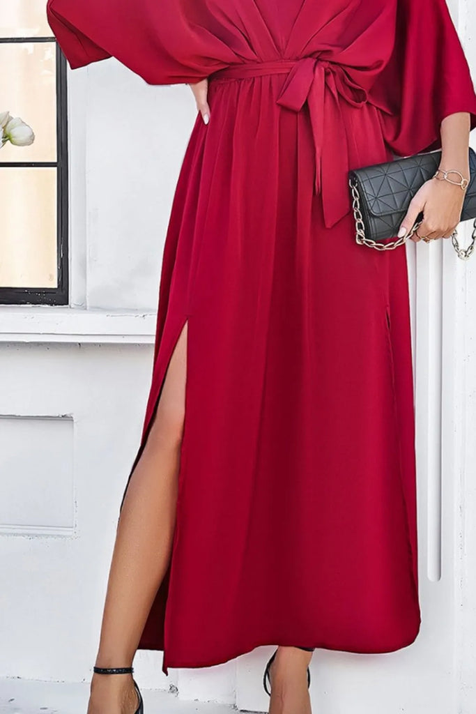 V-neck Belted Split Maxi Dress