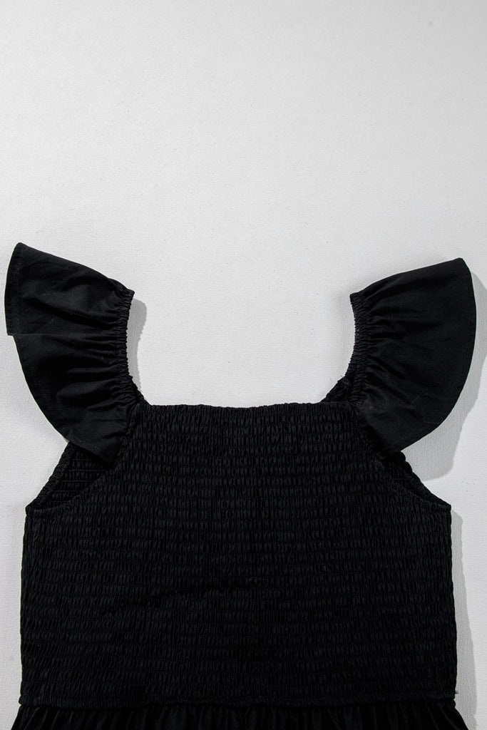 V Neck Ruffled Cap Sleeve Smocked Maxi Dress
